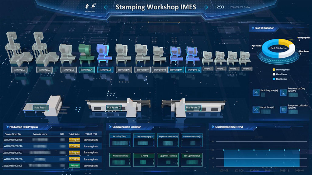 বেনফেং সিটস ইন্টেলিজেন্ট ম্যানুফ্যাকচারিং ফ্যাক্টরির লেআউটটি স্বতন্ত্র কার্যকরী বিভাগ সহ পরিষ্কার, যা সমস্ত উত্পাদন লিঙ্কগুলির দক্ষ সমন্বয়ের সুবিধা দেয়৷